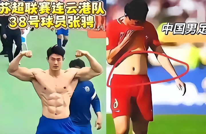 当 C 罗用 40 岁的身材诠释 “职业运动活动 员” 的极致,国足的身材争议却再次被推上风口。网友翻出集训照:宽松运动活动 服 下,部分球员凸起的肚腩清晰可见,跑动时腰间赘肉晃动,与苏超球员张骋脱衣庆祝时展现的八块腹肌、饱满肱二头肌形成惨烈对比。