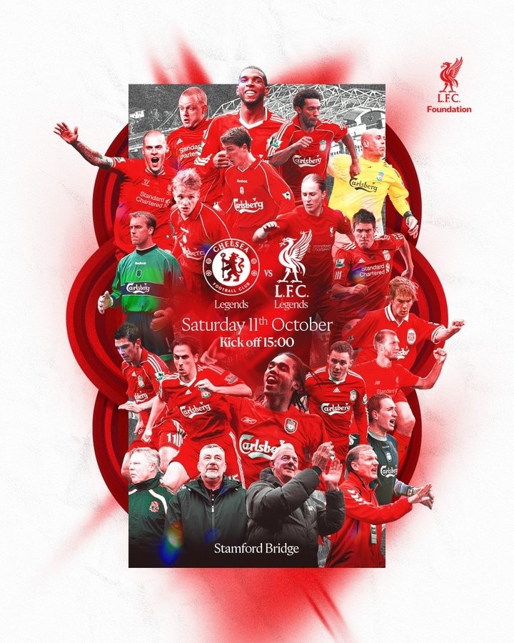 10月11日讯 利物浦官推今天晒出海报,预热了和切尔西的传奇赛。