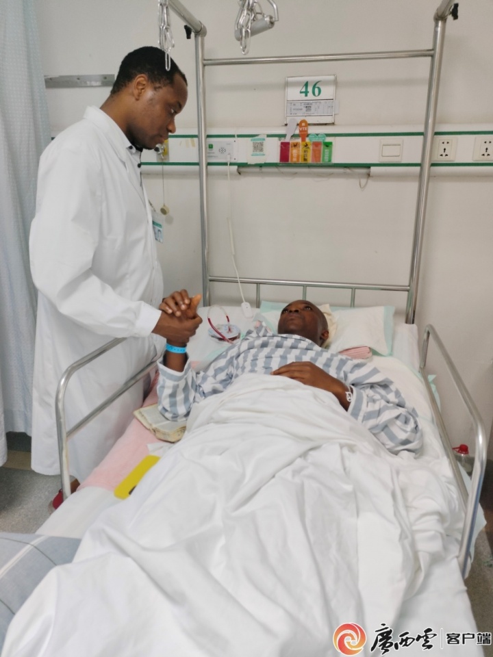 为缓解阿萨莫阿身处异国就医的焦灼 情绪,主刀医生詹新立还特意安排自己带教的在读博士生阿布前往病房探望。巧合的是,阿布与阿萨莫阿同为加纳人。“老乡见老乡”的亲切沟通 ,不仅有效疏解了阿萨莫阿的不安,也让他对后续诊疗更添信任感。