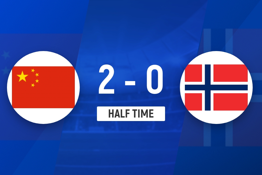 上半场补时2分钟,半场结束,中国U17女足2-0挪威U17女足。