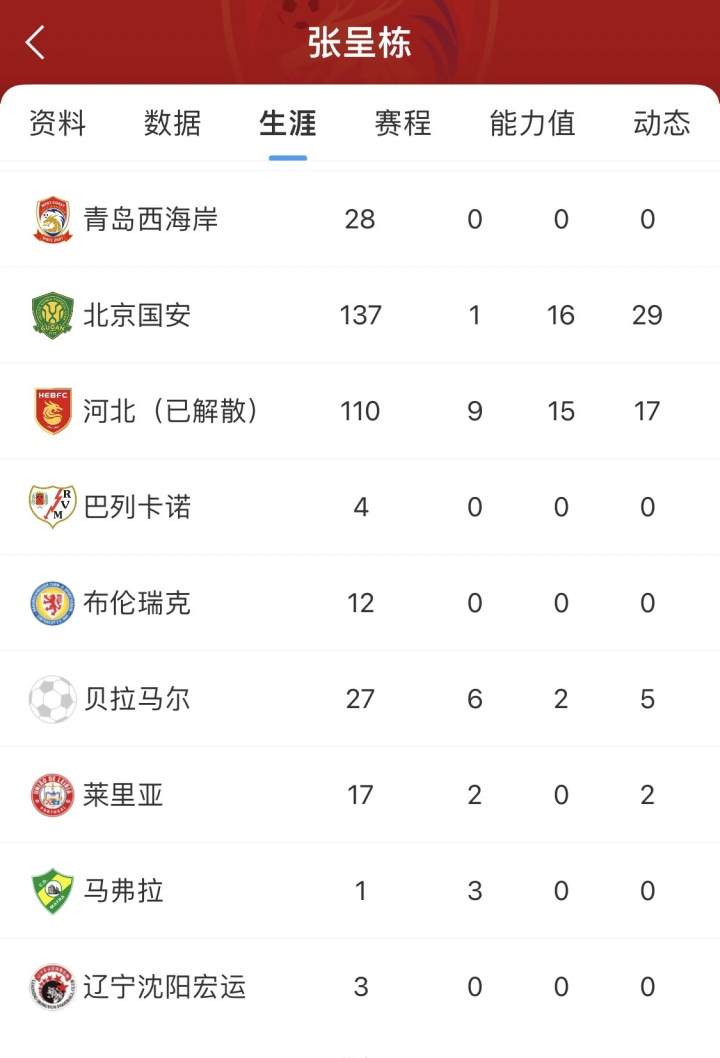 张呈栋现年36岁,与青岛西海岸合同今年年底到期。