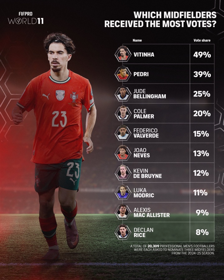 FIFPRO年度11人由世界各地的职业球员投票选出,是足坛唯一完全由球员决定的全球性奖项。评选的球员表现参考时间为2024年7月15日-2025年8月13日,期间至少参加30场正式赛事 。