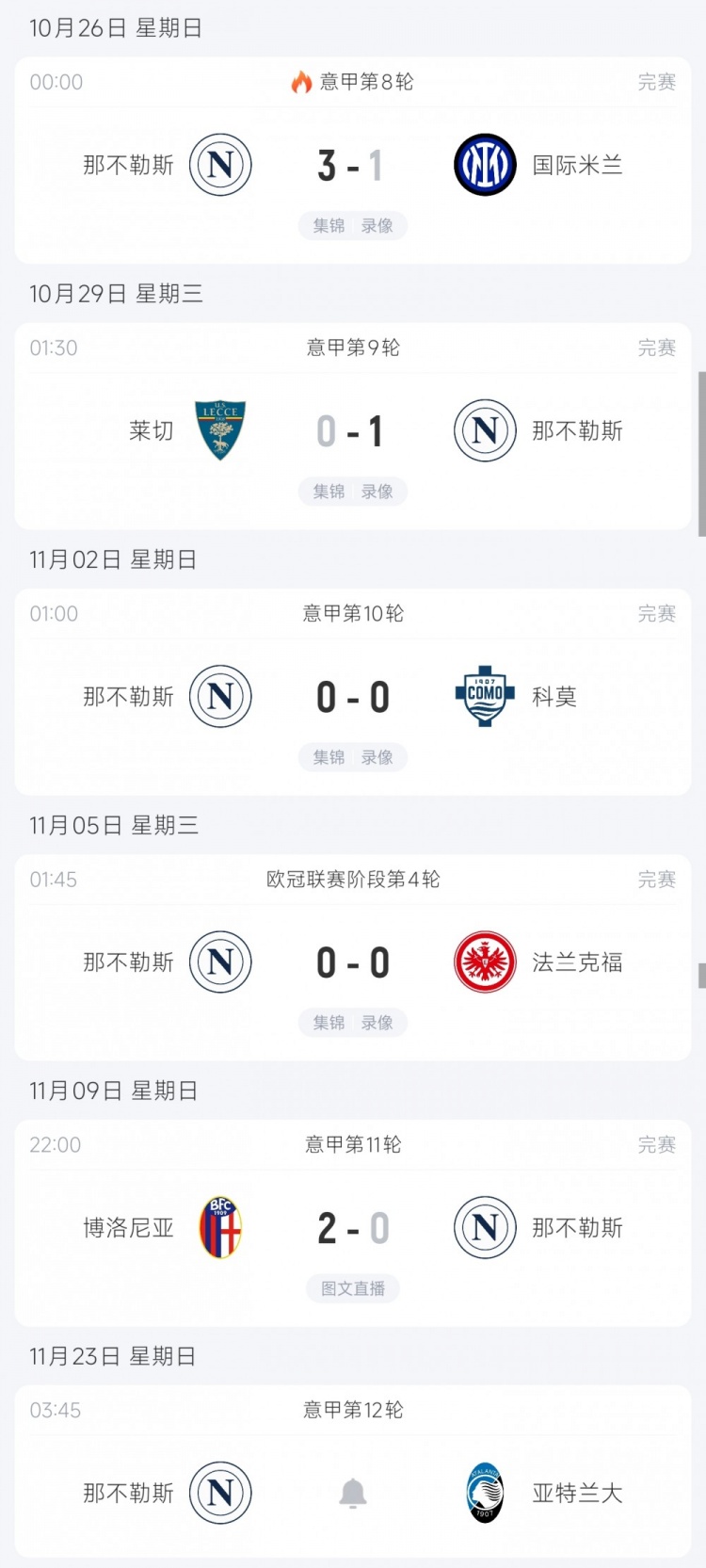 11月9日讯 意甲第11轮,那不勒斯客场应战 0-2不敌博洛尼亚,连续3场遭零封。